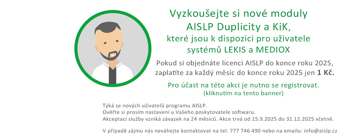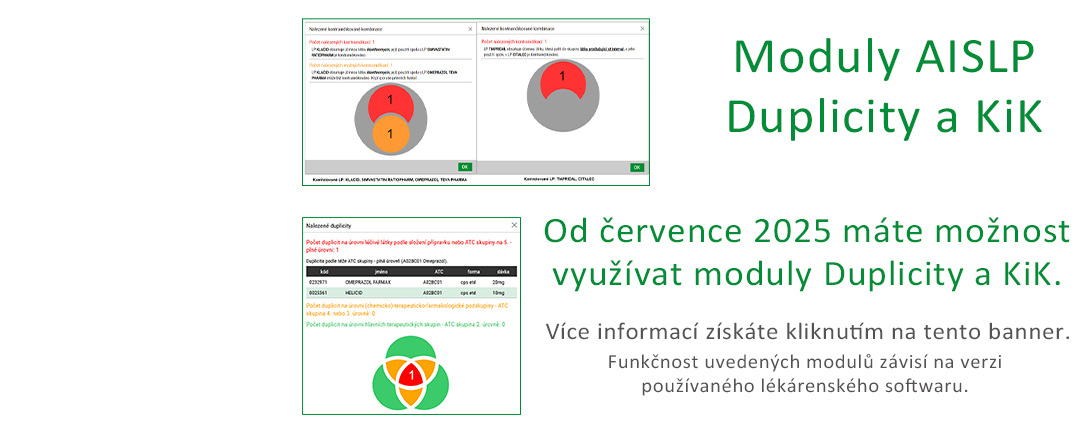 Moduly AISLP Duplicity a KiK jsou nyní k dispozici pro uživatele systémů lékárenských softwarů jako je LEKIS a MEDIOX.